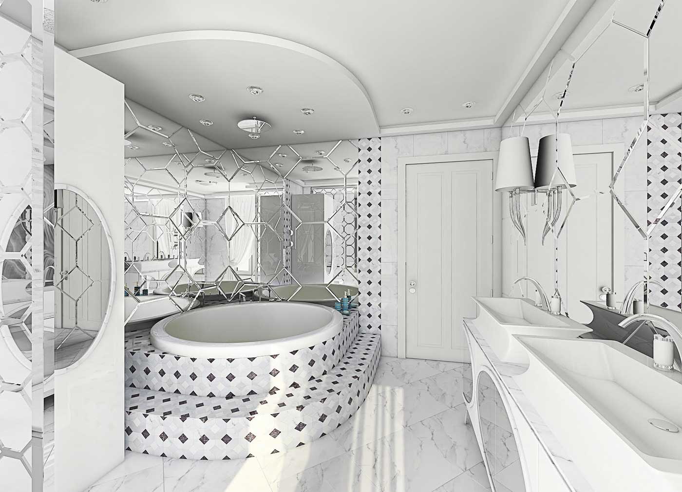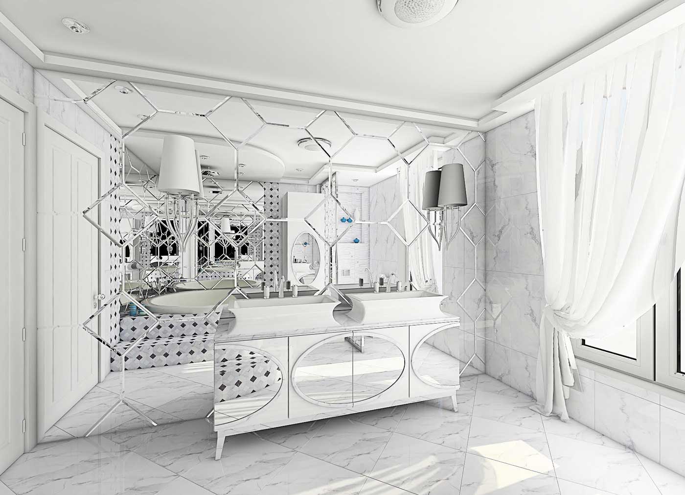 Marmura, cristale, piele capitonata. Elemente glamour, care folosite in prea multe nuante si-ar pierde din stralucirea si pretiozitatea.
