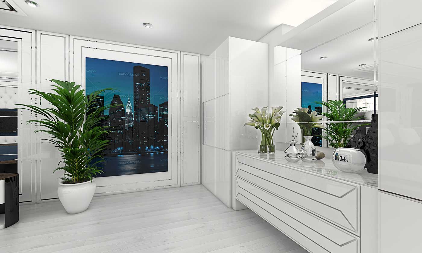 Dar toate aceste elemente luxoase, alese pe alb, isi pastreaza eleganta individuala. In acelasi timp, interiorul alb face ca incaperea sa fie mai spatioasa si mai luminoasa, prin reflexia luminii.