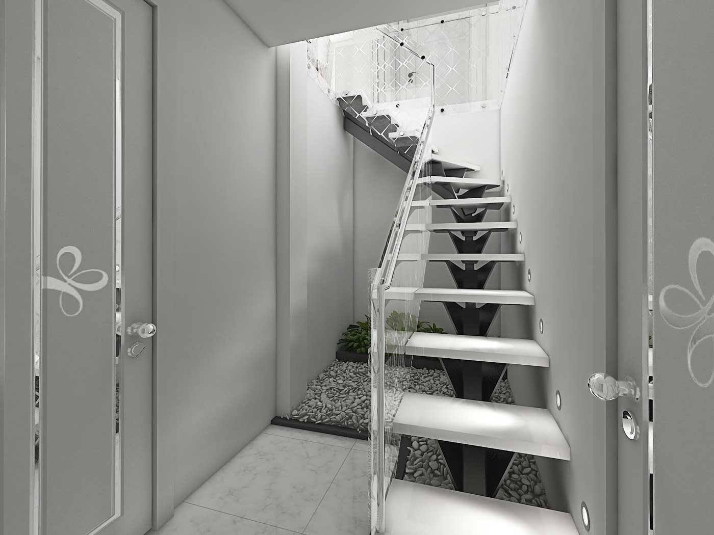 Singurele nuante ce ies din zona albului, sunt nuantele ce imita interiorul unei pietre de cuart, amplasate in forma decorativa in bucatarie si sub forma unui tablou.