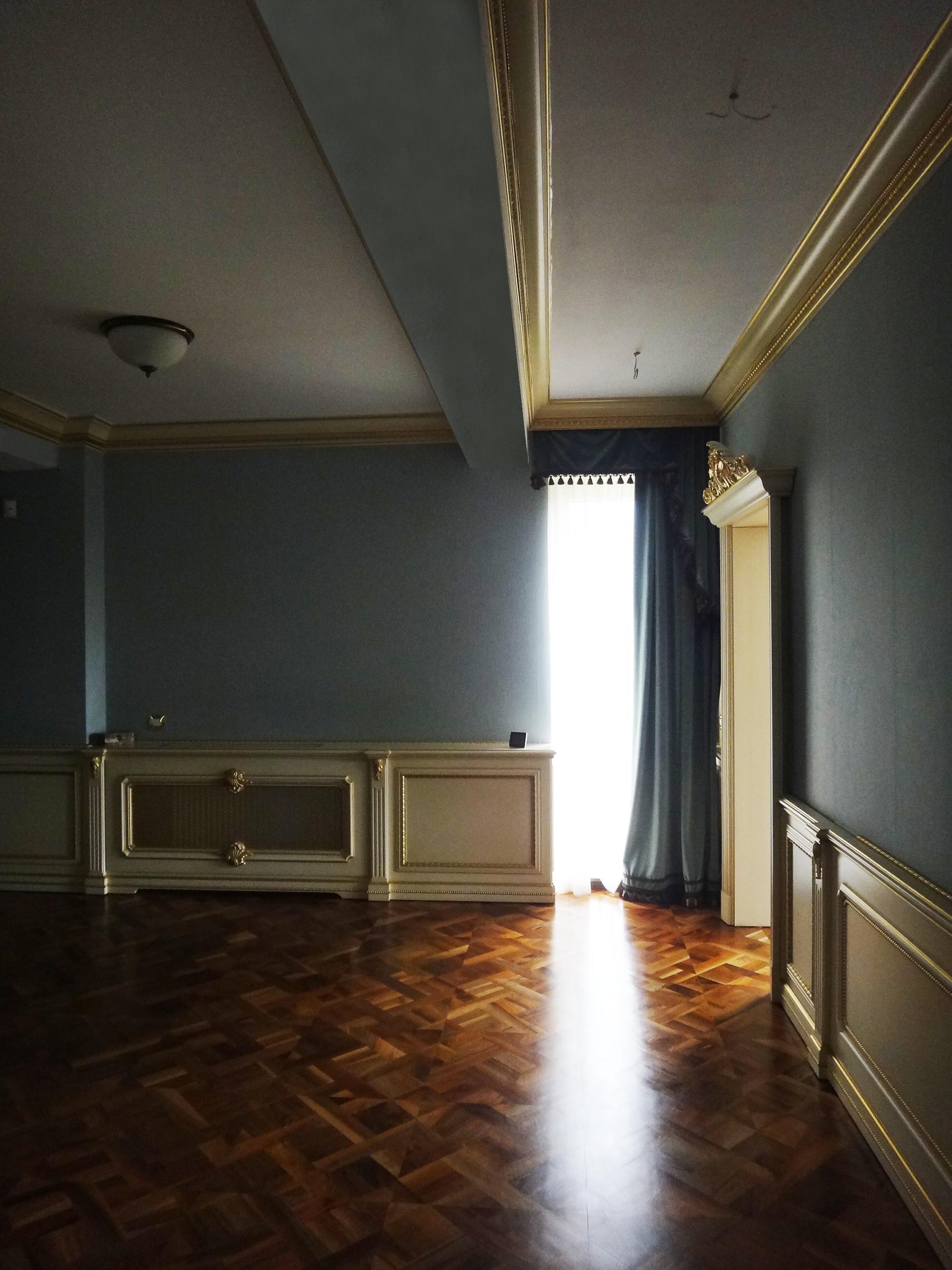 pardoseala din lemn masiv si usile impunatoare s-a obtinut o amenajare eleganta, opulenta si granduoasa.