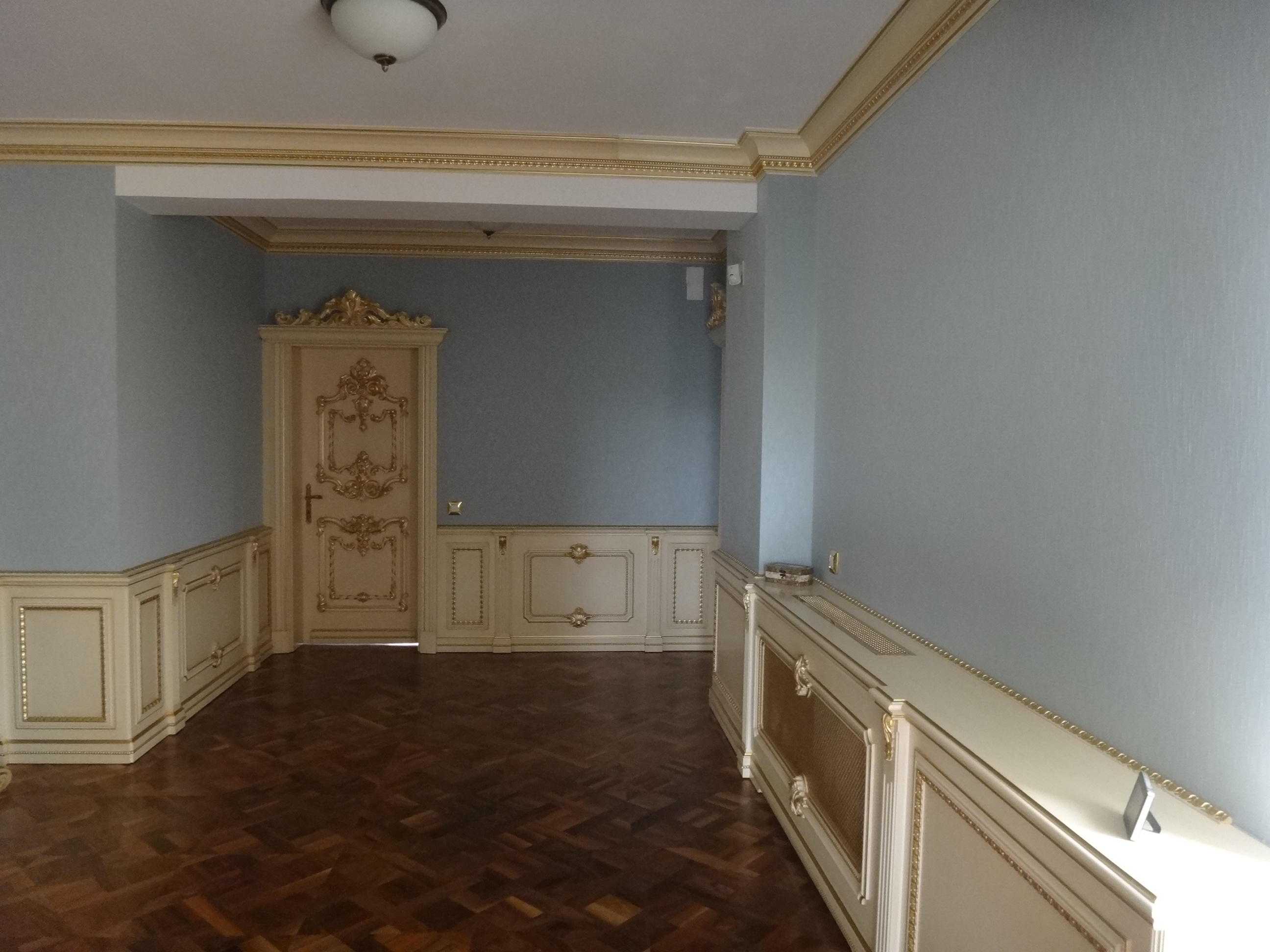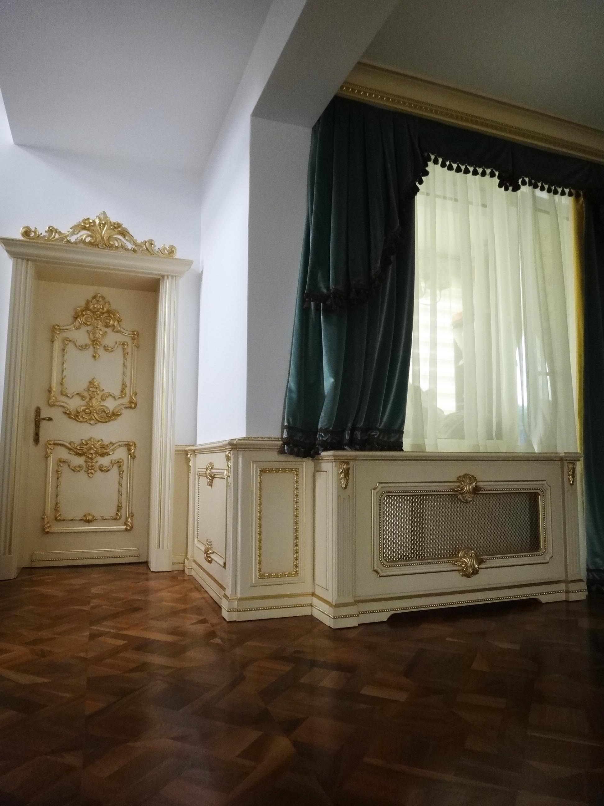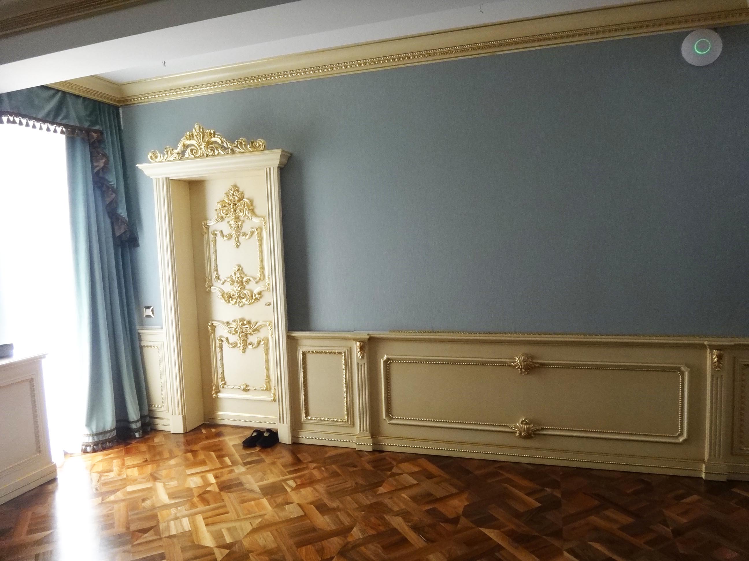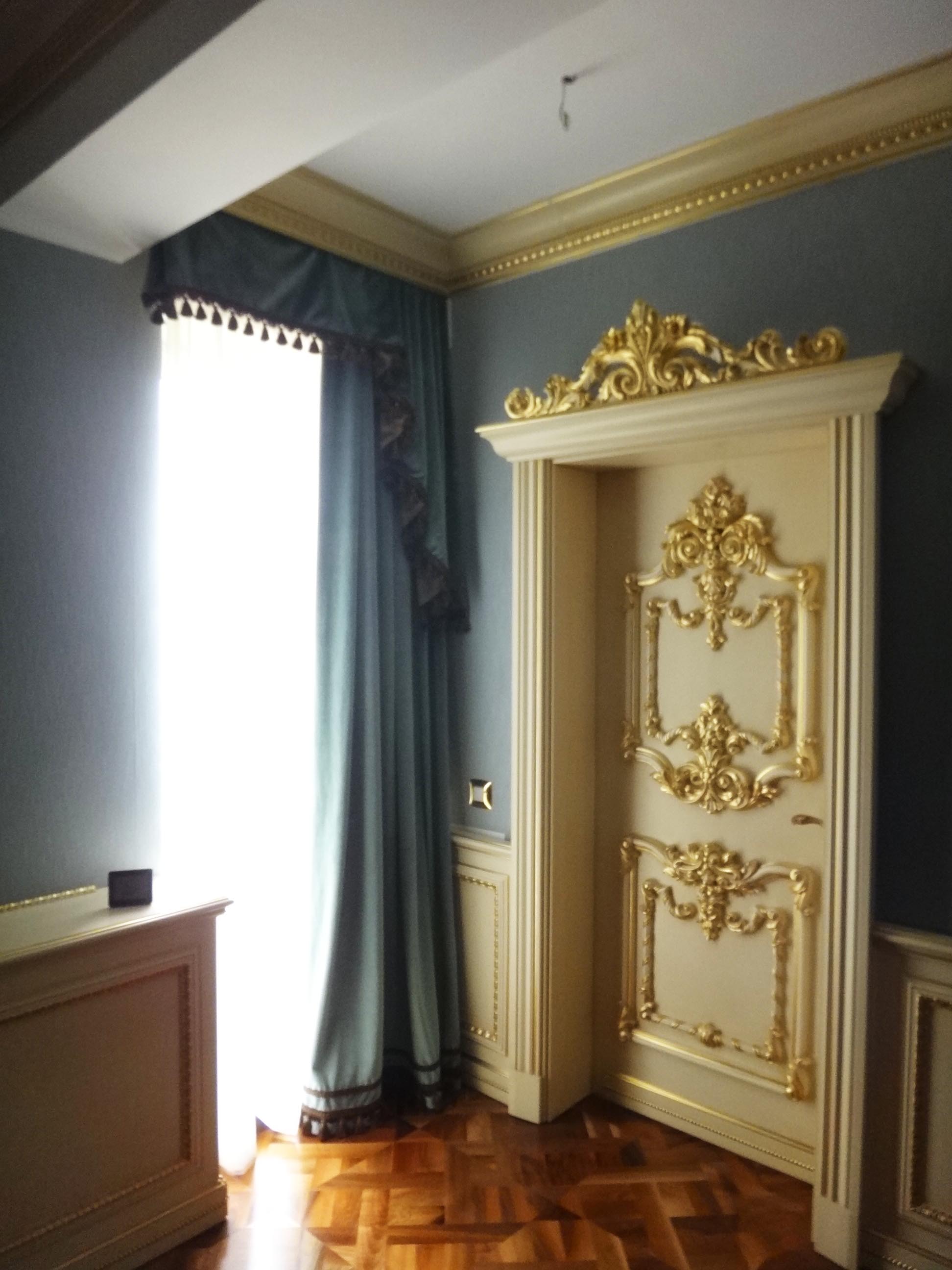 si argint pentru boiserie joasa si usile de interior, insa a fost simplificat