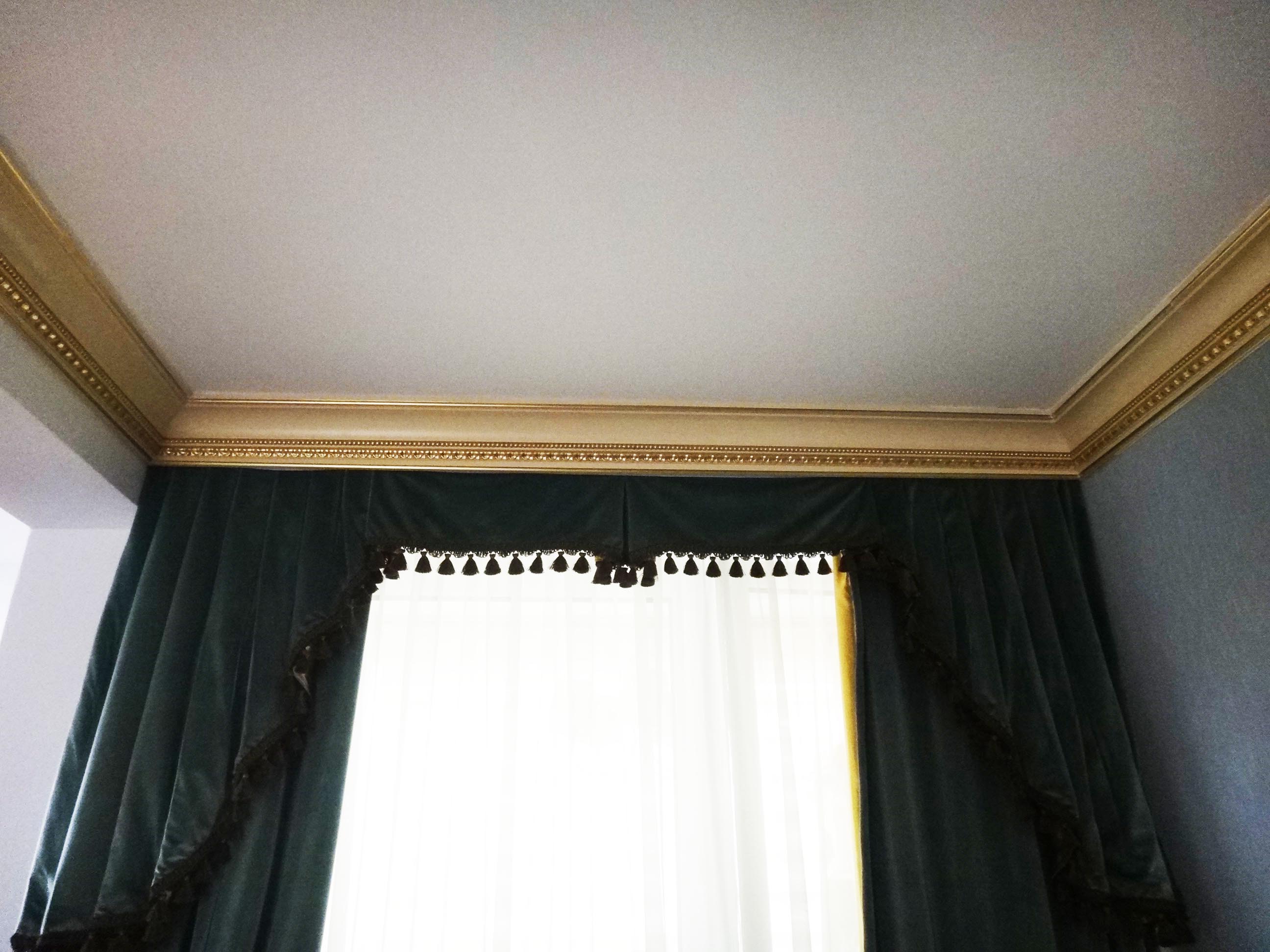 Stilul amenajarii este cel baroc, bogat in elemente decorative cu foita de aur